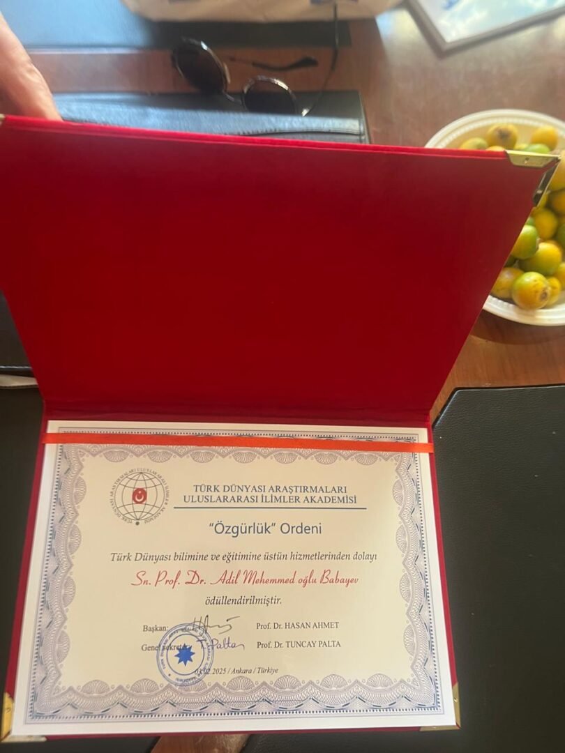 İstiqlal ordeni 2025-ci ildə professor “Dədə Qorqud” ETL-nin baş elmi işçisi, professor Adil Babayev Atatürk adına Uluslararası Türkoloji Akademiyası tərəfindən “İstiqlal ordeni” ilə təltif edilmişdir FacebookLinkedIn